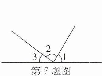 7. 如图,∠1 + ∠2 + ∠3 是一个平角,如果∠1 = 65°15',∠2 = 78°30',则∠3 = __________.