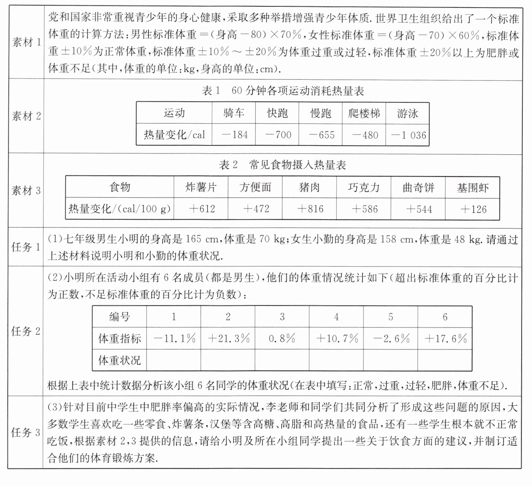 (1)小明的体重状况为体重过重 小勤的体重状况为正常