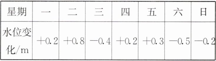 (2) 与上周末相比,本周末河流的水位是上升了还是下降了?变化了多少?(要求写出求解过程)