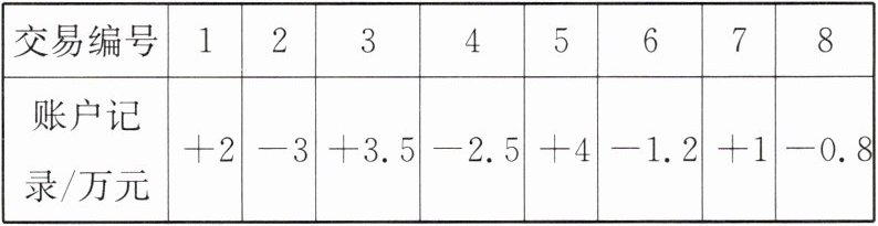 变式 2 [2025 长沙模拟]现在网上转账非常便利,某公司每天生意上的往来都是通过网上银行转账,下表是该公司某一天账户转账记录(转入为正,转出为负),该公司账户上原有余额 8 万元.