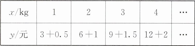 8. 【应用意识】某工厂生产了一批产品,出厂时要在成本的基础上加上一定的利润,其质量 $ x $(单位:$ kg $)与出厂价 $ y $(单位:元)之间的关系如表所示: