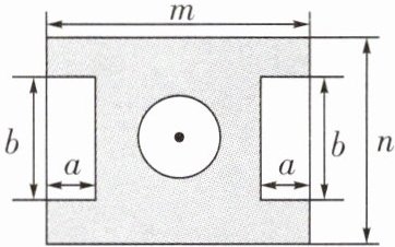4. [2024 台州模拟]学校办公楼前有一长为 $m$,宽为 $n$ 的长方形空地(如图),在中心位置留出一个直径为 $2a$ 的圆形区域建一个喷泉,两边是长为 $b$,宽为 $a$ 的两块长方形的休息区,阴影部分为绿地。