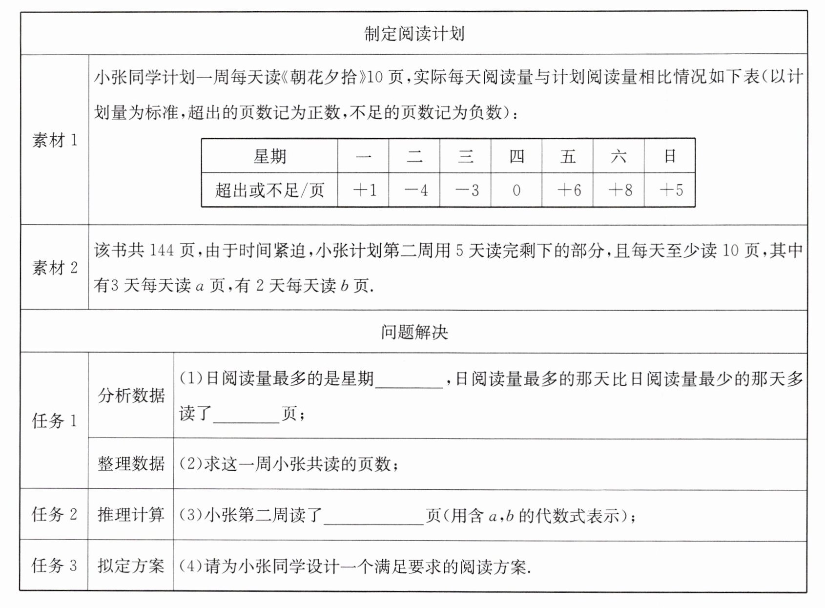 (4)为小张同学设计的阅读方案有两种: 方案一:有3天读11页,有2天读14页; 方案二:有3天读13页,有2天读11页.(任选其中一种即可)