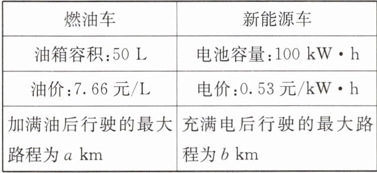 则燃油车每千米的行驶费用为______元,新能源车每千米的行驶费用为______元.(用含 $a$ 或 $b$ 的代数式表示)