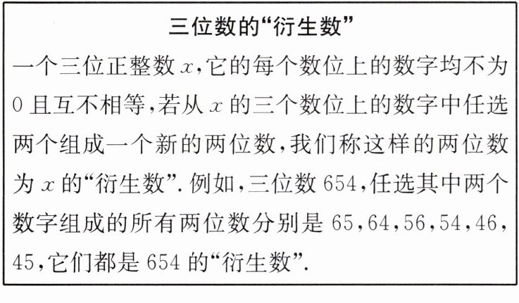 (2)这个三位数是100a+10b+c,它所有的“衍生数”的和为22(a+b+c)