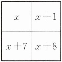 因为对角线的和分别为$x+(x + 8)=2x + 8$,$(x + 1)+(x + 7)=2x + 8$,