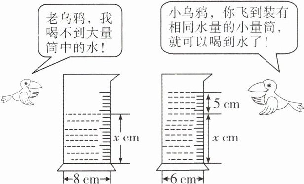 A.$\pi × \left( \frac{8}{2} \right)^2 x = \pi × \left( \frac{6}{2} \right)^2 (x - 5)$