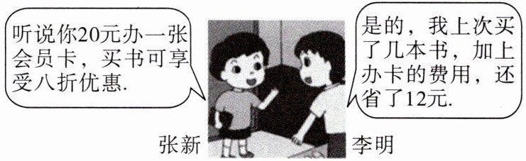 11. 如图,张新和李明相约到图书大世界去买书,请根据他们的对话内容,求出李明上次购买书籍的原价.