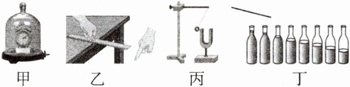 D.图丁:用大小相同的力敲击装有不同高度水的瓶子,最右侧的瓶子发出的音调最高