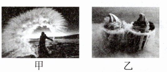 7. 如图甲所示是一张“泼水成冰”的照片。在北方室外气温极低时,泼出温度较高的热水,热水先汽化成水蒸气,水蒸气迅速凝结成小冰晶,就会出现图甲中的壮观场景。水蒸气凝结成小冰晶的过程中会______(选填“吸收”或“放出”)热量。如图乙所示,这是“液氮冰激凌”,冰激凌周围弥漫着大量的“白气”,这些“白气”实质是______(选填“水蒸气”或“小水珠”)。