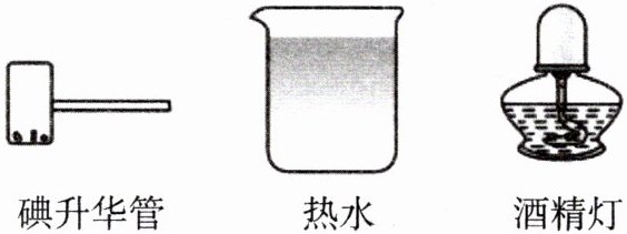 8. 科技应用 小林用如图的一些实验器材做碘升华的实验,实验前他查阅了一些资料如下:标准大气压下,碘的熔点$114^{\circ}C$,碘的沸点$184^{\circ}C$,水的沸点$100^{\circ}C$,酒精灯火焰约$500^{\circ}C$。根据这些资料分析,小林应选________给碘升华管加热,因为________________________而导致碘不能熔化,才能出现固态碘直接变成碘蒸气的现象。