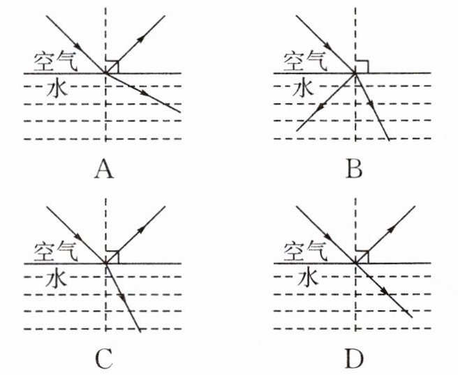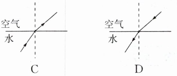 2. 下列光路图中,正确表示光从空气斜射到水面的是( )