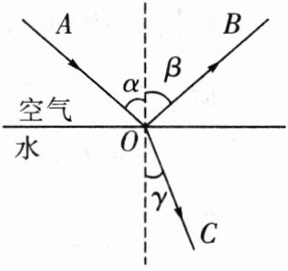 (4)若一束激光沿CO方向从水中射入空气中,则激光在空气中传播的光路是______(选填“OA”或“OB”);此时的折射角大小等于______(选填“α”“β”或“γ”)。