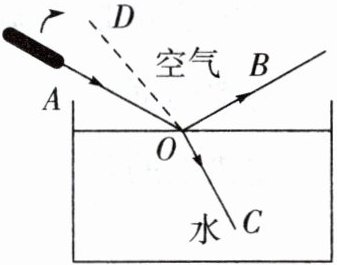 5. 物理学习小组的同学用激光笔发出一束红光从空气斜射入水中的情景如图,图中AO为入射光线,______为折射光线;保持入射点O不动,在竖直平面内,顺时针缓慢旋转入射光线AO至图中虚线DO位置,反射角将______(选填“变大”“不变”或“变小”)。