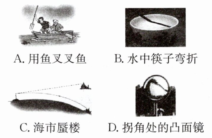 4. 鱼儿在清澈的水中游动,当沿着看见鱼的方向去叉它,却叉不到。在下列光路图中,能正确说明叉不到鱼的原因的是( )