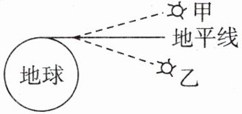 11. 科学本质 诗句“大漠孤烟直,长河落日圆”给我们展现了一幅美丽的画卷。其实诗人观察到的落日并非太阳的实际位置(如图所示),而是太阳光经过不均匀的大气层发生了______所成的像,太阳实际在图中______(选填“甲”或“乙”)的位置。人眼所看到的太阳是______(选填“实”或“虚”)像。