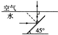 14. 如图所示是经平面镜反射的反射光线,请画出射向平面镜的入射光线和射出水面的折射光线。