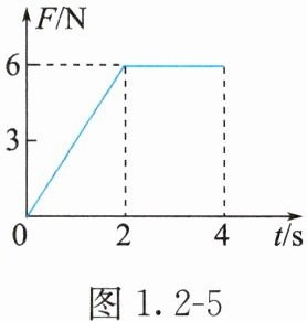 7. (多选)一质量 $ m = 2\ kg $ 的物块静止在光滑的水平面上,从 $ t = 0 $ 时刻开始,物块受到水平向右的外力 $ F $ 作用,外力 $ F $ 随时间 $ t $ 变化的关系如图 1.2 - 5 所示,则下列说法正确的是( )。