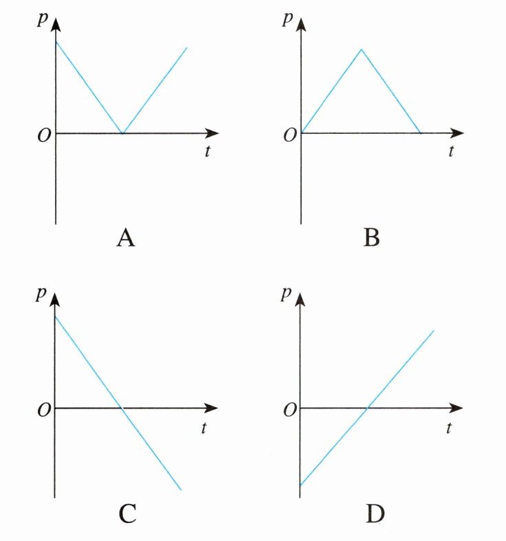 5. 竖直向上抛出一个物体,若不计空气阻力,取竖直向上为正方向,则该物体的动量随时间变化的图像是( )。