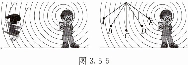 5. (多选)如图 3.5 - 5 所示,一位男同学站立不动唱歌,一位女同学坐在秋千上来回摆动,下列关于女同学的感受的说法中,正确的是( )。