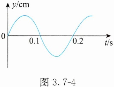 6. (2022·河北)一列简谐横波沿$x$轴正方向传播。波速为$10m/s$。在传播方向上有$P$、$Q$两质点,坐标分别为$x_{P} = 1m$,$x_{Q} = 6m$。波传播到$P$点开始计时,该点的振动图像如图3.7 - 4所示,则简谐波的波长为______$m$,经过______$s$,$Q$点第一次到达正向最大位移处。