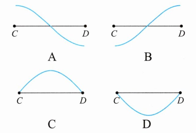 3. (2023·上海)如图3.7 - 2所示,有一周期为$T$、沿$x$轴正方向传播的波,当$t = 0$时波恰好传到$B$点,则$t = 8T$时,$CD$段的波形图为( )。