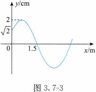 5. (2022·全国甲)一平面简谐横波以速度$v = 2m/s$沿$x$轴正方向传播,$t = 0$时刻的波形图如图3.7 - 3所示,介质中平衡位置在坐标原点的质点$A$在$t = 0$时刻的位移$y = \sqrt{2}cm$,该波的波长为______$m$,频率为______$Hz$,$t = 2s$时刻,质点$A$______(填“向上运动”“速度为$0$”或“向下运动”)。