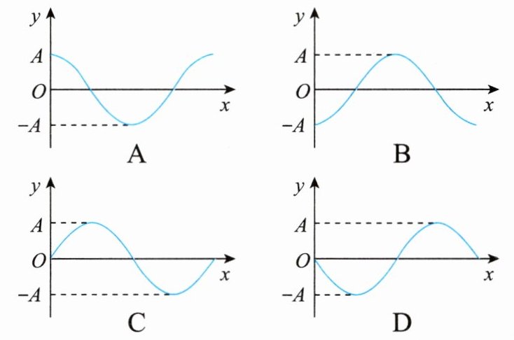 2. (2023·北京)位于坐标原点处的波源发出一列沿$x$轴正方向传播的简谐横波。$t = 0$时波源开始振动,其位移$y$随时间$t$变化的关系式为$y = A\sin(\frac{2\pi}{T}t)$,则$t = T$时的波形图为( )。