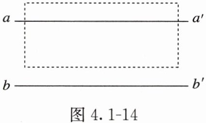 (1) 甲同学在纸上正确画出玻璃砖的两个界面 $ aa' $ 和 $ bb' $ 后,不小心碰了玻璃砖,使它向 $ aa' $ 方向平移了少许,如图 4.1 - 14 所示,则他测出的折射率将 ______(填“偏大”“偏小”或“不变”)。