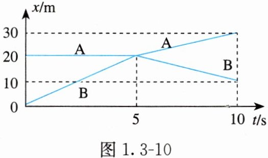 8. 两个小球 A、B,质量分别为 $ m_A = 1.5 \, kg $ 和 $ m_B = 0.5 \, kg $,在光滑水平直线轨道上碰撞。两个小球碰撞前后的 $ x - t $ 图像如图 1.3 - 10 所示,由此可知( )。