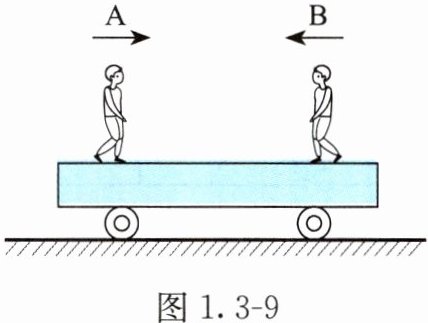 7. 如图 1.3 - 9 所示,一辆小车静止在光滑的水平面上,A、B 两人分别站在小车的两端。当两人同时相向运动时( )。