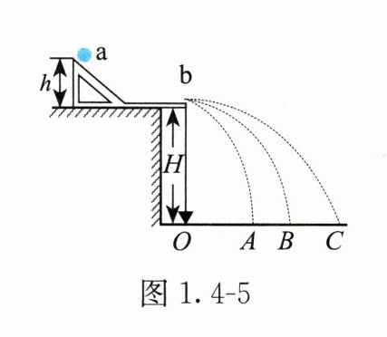 (2)放上被碰小球 $ b $,两球($ m_a > m_b $)相碰后,小球 $ a $、$ b $ 的落点依次是图 1.4 - 5 中水平面上的______点和______点。