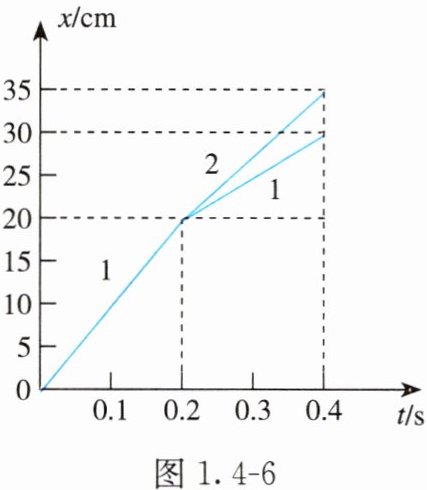 3. 在“验证动量守恒定律”的实验中,入射小球 $ m_1 = 15g $,原来静止的被碰小球 $ m_2 = 10g $,由实验测得它们在碰撞前后的 $ x - t $ 图像如图 1.4 - 6 所示。由此可知入射小球碰撞前的 $ m_1v_1 $ 是______ $ kg · m/s $,入射小球碰撞后的 $ m_1v_1' $ 是______ $ kg · m/s $,被碰小球碰撞后的 $ m_2v_2' $ 是______ $ kg · m/s $。由此可初步得出结论:________________________。