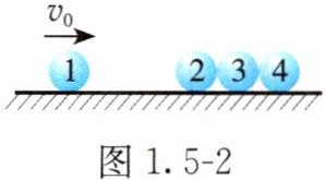 如图1.5-2所示,光滑水平面上并排放着静止的小球2、3、4,小球1以速度$ v_0 $射来。已知四个小球完全相同,小球间发生弹性碰撞,则碰撞后各小球的运动情况如何?