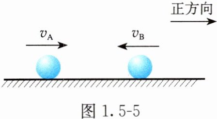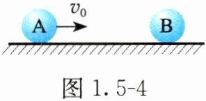 3. 如图1.5-4所示,小球A的质量为$ m_A = 4.5kg $,动量大小为$ p_A = 4kg · m/s $,方向水平向右。它与静止的小球B发生弹性碰撞,碰撞后A的动量大小为$ p_A' = 1kg · m/s $,方向水平向左。若规定向右为正方向,则碰撞过程中小球A受到的冲量$ I_A = $______ $ N · s $,小球B的质量为______kg。
