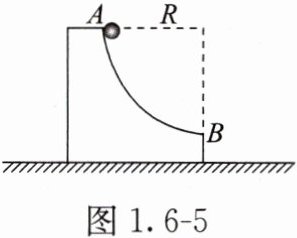 7. (多选)如图 1.6 - 5 所示,光滑水平面上静置一个有 $\frac{1}{4}$ 光滑圆弧的凹槽,凹槽的半径为 $R = 0.25\ m$,质量为 $M = 0.2\ kg$,另有一质量为 $m = 0.05\ kg$ 的小球从凹槽的左侧最高点由静止释放,且小球滑到最低点 $B$,则( )。