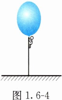 6. 如图 1.6 - 4 所示,大气球下面有一根长绳,一个质量为 $m_1 = 50\ kg$ 的人抓在气球下方,气球和长绳的总质量为 $m_2 = 20\ kg$,长绳的下端刚好和水平面接触,当静止时人离地面的高度为 $h = 5\ m$。如果这个人开始沿绳向下滑,当他滑到绳下端时,他离地面的高度约为(可以把人看作质点)( )。