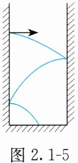 例题 1 如图 2.1 - 5 所示,一个弹性小球被水平抛出后,在两个互相平行的竖直平面间运动,小球落地前的运动是机械振动吗?为什么?