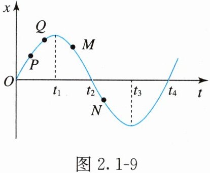 5. 图 2.1 - 9 为某物体做简谐运动的图像,试根据图像填空。
