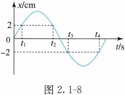 4. (多选)弹簧振子在做简谐运动,振动图像如图 2.1 - 8 所示,则下列说法正确的是( )。