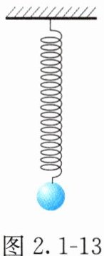 2. 如图 2.1 - 13 所示,一轻质弹簧上端系于天花板上,下端挂一质量为 $ m $ 的小球,弹簧的劲度系数为 $ k $,将小球从弹簧为自由长度时的竖直放置放手后,小球做简谐运动。(重力加速度为 $ g $)
