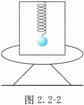 例题3 如图2.2 - 2所示,质量为$3m$的框架放在一水平台秤上,一轻质弹簧上端固定在框架上,下端拴一质量为$m$的金属小球,小球上下振动。当小球运动到最低点时,台秤的示数为$5mg$,$g$为重力加速度。