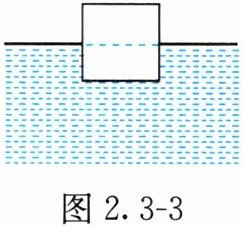 例题 3 一质量为 $ m $、横截面积为 $ S $ 的正方体木块,放在水面上静止(平衡),如图 2.3 - 3 所示。现用力向下将其压入水中某一深度后(未浸没)撤掉外力,木块在水面上下振动,试判断木块的振动是否为简谐运动。