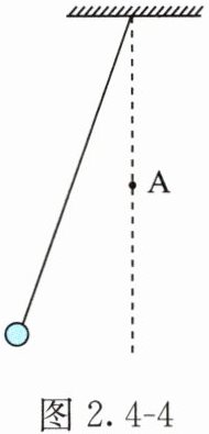 例题3 细长轻绳下端系上一个小球构成单摆。在悬挂点下方$\frac{1}{2}$摆长处有一个能挡住摆线的光滑钉子A,如图2.4-4所示。现将单摆向左方拉开一个很小的角度,然后无初速度释放。请回答下列问题,并简要说明理由。