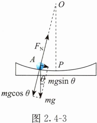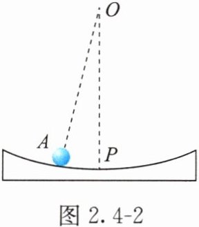 例题2 如图2.4-2所示,一个上表面为光滑圆弧的圆槽固定在地面上,其圆心为$O$,圆弧的最低点为$P$。把一光滑小球(可视为质点)从距$P$点很近的$A$点由静止释放,试简要分析光滑小球其后的运动是否可以等效视作一个单摆。