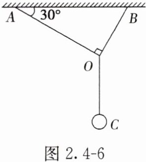 5. 如图2.4-6所示,三根细线在$O$点处打结,$A$、$B$端固定在同一水平面上相距为$l$的两点上,使$\triangle AOB$成直角三角形,已知$\angle BAO = 30°$,$OC$线长是$l$,下端$C$点系着一个小球,下列说法正确的是(以下摆动皆指小角度摆动)( )。