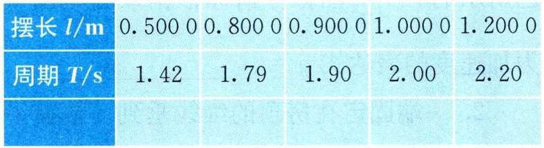6. 某同学在做“用单摆测量重力加速度”的实验时,测量了 $ 5 $ 种不同摆长情况下单摆的周期,记录数据如下。