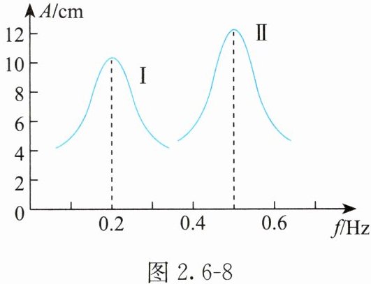 2. 图 2.6 - 8 为单摆在两次受迫振动中的共振曲线,请回答下列问题。