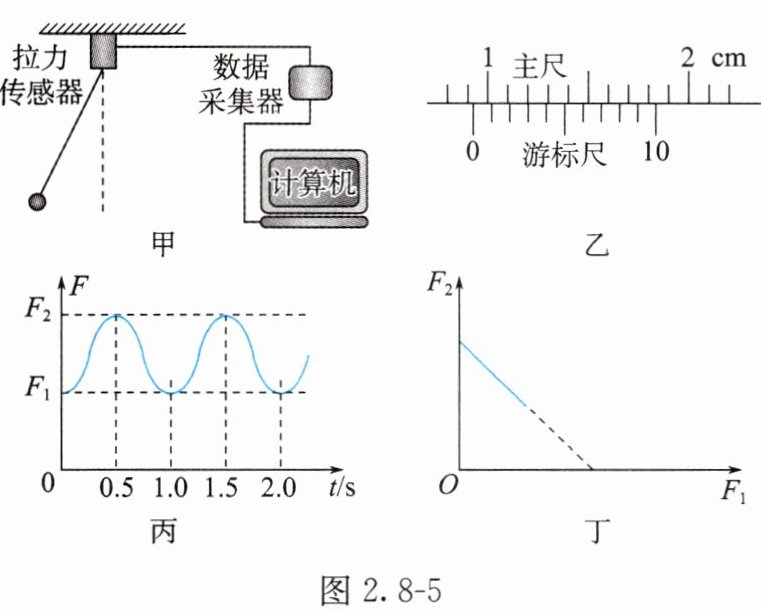 (4)将小钢球多次拉离竖直方向一定角度后由静止释放,测得拉力的最小值F₁与最大值F₂并得到F₂-F₁图线,如图2.8-5丁所示,如果小钢球在摆动的过程中机械能守恒,则该图线斜率的绝对值等于______。