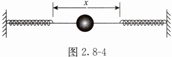 4. (2022·浙江6月)如图2.8-4所示,一根固定在墙上的水平光滑杆,两端分别固定着相同的轻弹簧,两弹簧自由端相距x。套在杆上的小球从中点以初速度v向右运动,小球将做周期为T的往复运动,则( )。